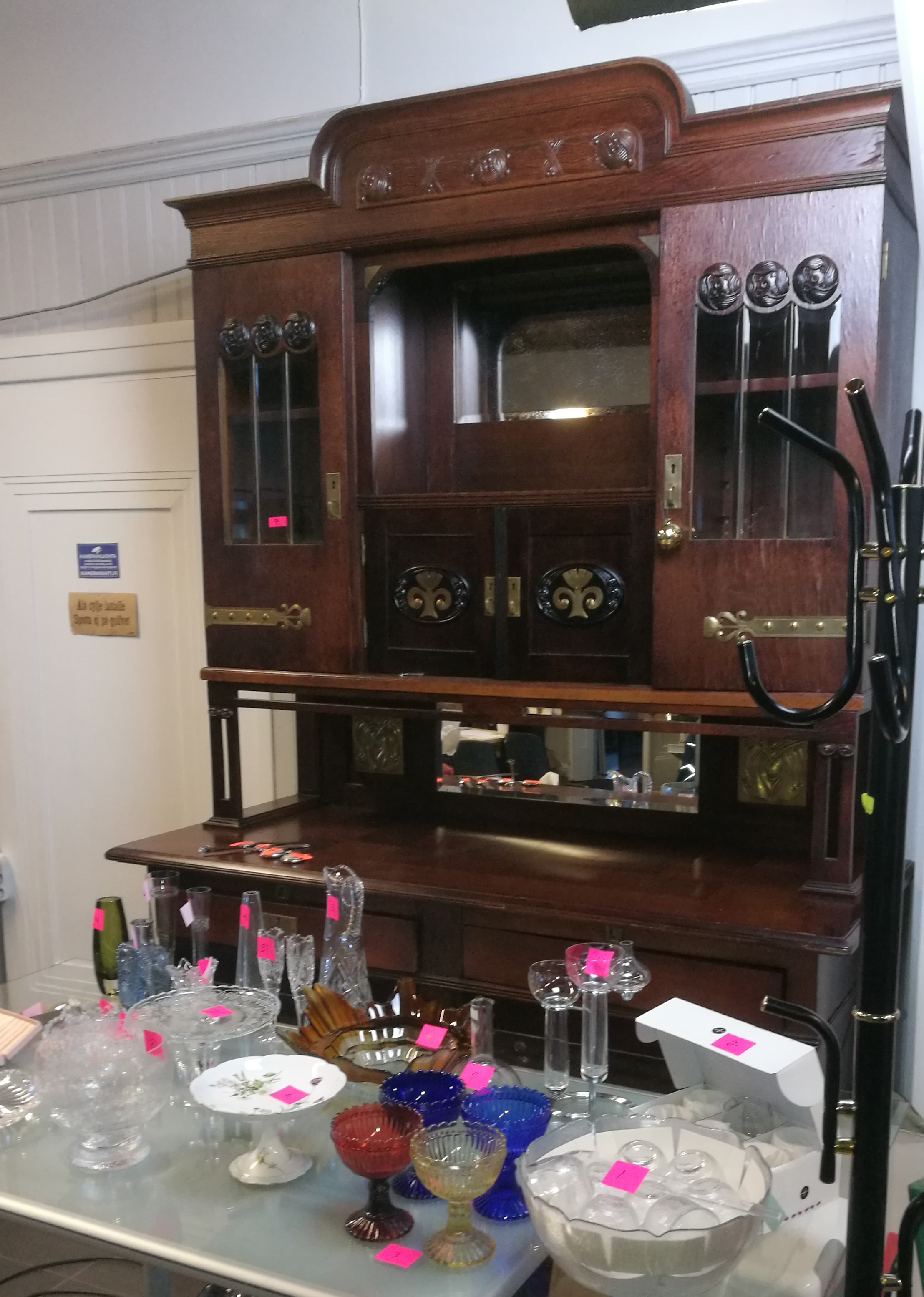 Huutokaupassa 7.3.2020 myynnissä muun muassa vanha kaappiradio/ levysoitin -yhdistelmä, Jugend kaappi, seinäkelloja, putkiradioita, kristallia ja muuta lasitavaraa, astioita, koruja, rakennusvälineitä, koneita ja muuta tavaraa.
